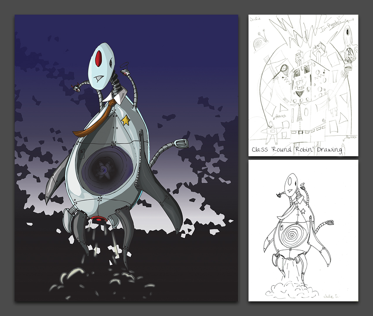 - Bob was created during a drawing exercise in one of my classes in college. We did a round robin style timed drawing where we had just 30 seconds to add something to the picture and then pass it on to the next person. The images on the right of the finished drawing show the class drawing (top) and the bottom drawing which is the pencil version of Bob.